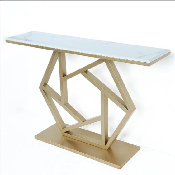 • The marble tabletop rests upon metal pedestals, creating visual interest in any room. Crafted from durable metal in a gold finish, it features a hexagon design and a clean-lined look that's perfect for your home. A great option for rounding out any space with an on-trend and luxurious touch.