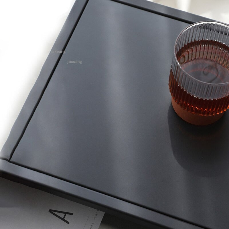 Product Details: A salute to rustic-modern style, our Sanford Square End Table pairs structured metal framework with the warmth of mid-tone wood. Resting on the slim metal base, the top is designed with a faux paneled pattern for extra dimension, and a single drawer below pulls out to clear away...